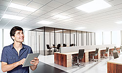 Sensors can be integrated, as can Tunable White functions. basicDIM Wireless automatically establishes a wireless communication network with up to 127 nodes at the installation location of the luminaire. This enables the user to dim/brighten the luminaire and to create and recall lighting scenes wirelessly via the user interface or an App.
